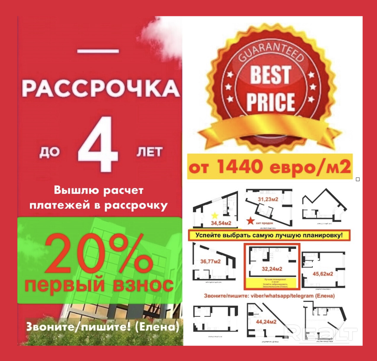 ШОК цены! ВЫГОДНАЯ инвестиция! от 1440/м2! Рассрочка 4 года! Звоните