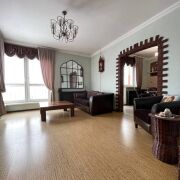 В гостиной окна в пол, что наполняет воздухом и светом пространство квартиры. Хорошая планировка, дизайн квартиры не только эстетичен, но и практичен. Много естественного света позволяет экономить электроэнергию. Красивый вид из окон.