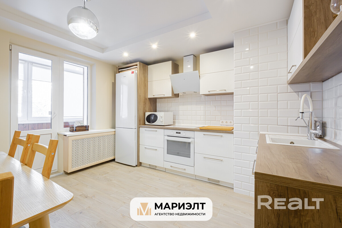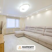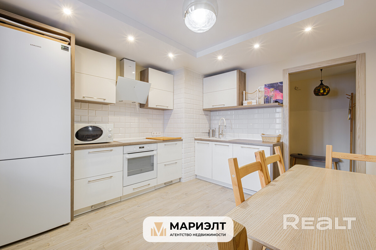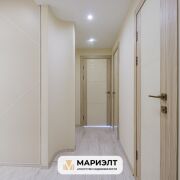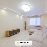 Ремонт выполнен в спокойных тонах. На кухне и в прихожей пол с подогревом. В жилых комнатах ламинат (есть небольшие дефекты). Современная качественная кухня с доводчиками Blum. Вся остальная мебель в квартире из массива. В прихожей огромный вместительный шкаф.