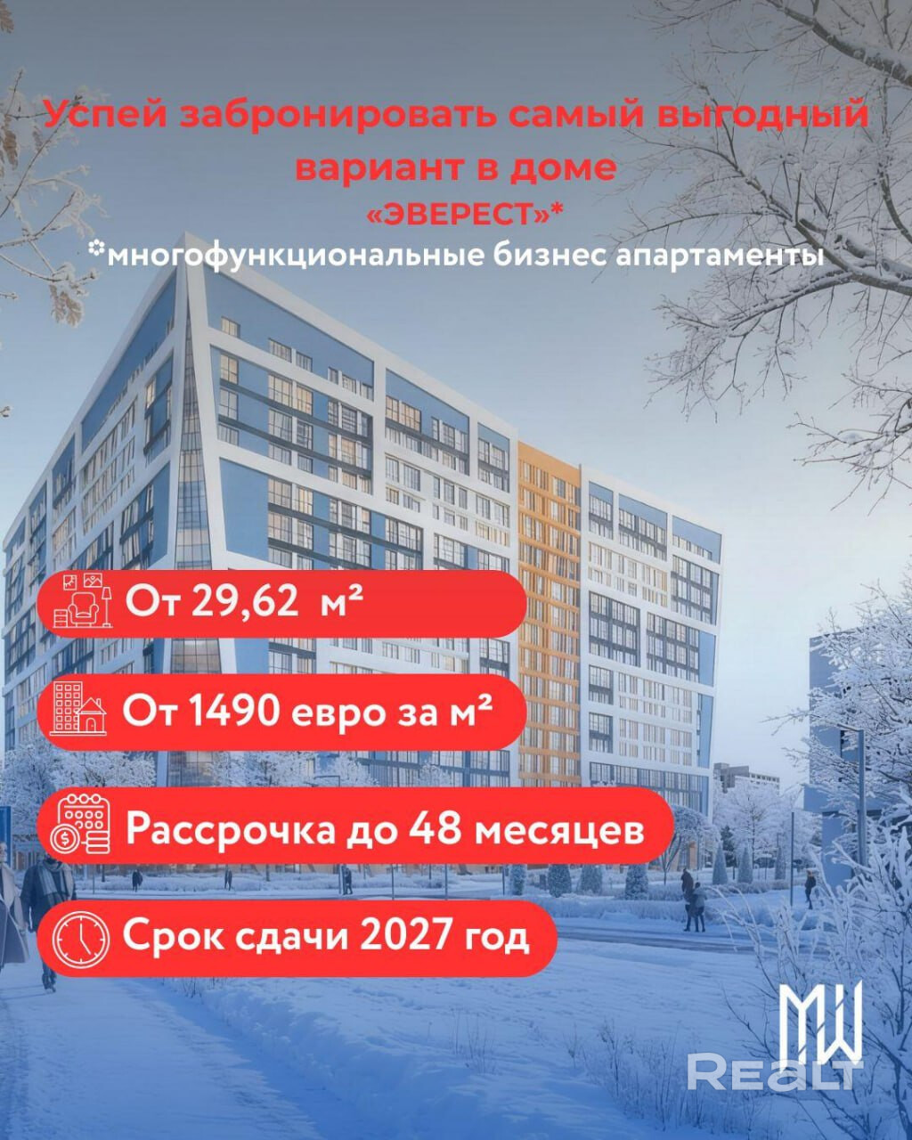 ВЫГОДНОЕ ПРЕДЛОЖЕНИЕ ДЛЯ ИНВЕСТИЦИИ В ДОМЕ ЭВЕРЕСТ. ВОЗМОЖНОСТЬ ПОКУПКИ В РАССРОЧКУ