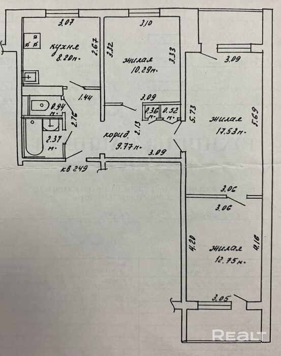 жилая 40.57 кв.м., кухня8.2 кв.м