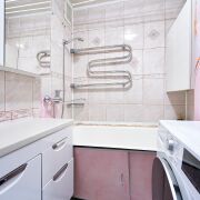 Современная плитка в ванной, межкомнатные двери массив, утепленная лоджия. Мебель встроенная и кухонный гарнитур остаются.