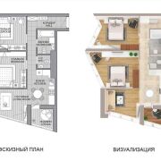 -Общая площадь по СНБ составляет 65,2 кв.м — метраж, который легко и грамотно зонируется в полноценные три комнаты без ощущения тесноты и «потерянных» метров.