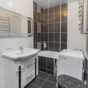 Комфортная планировка с двумя спальнями, гардеробной, просторной гостиной, совмещенной с кухней.
