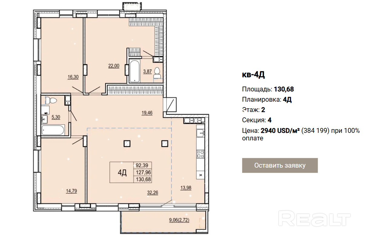 130.68 м²