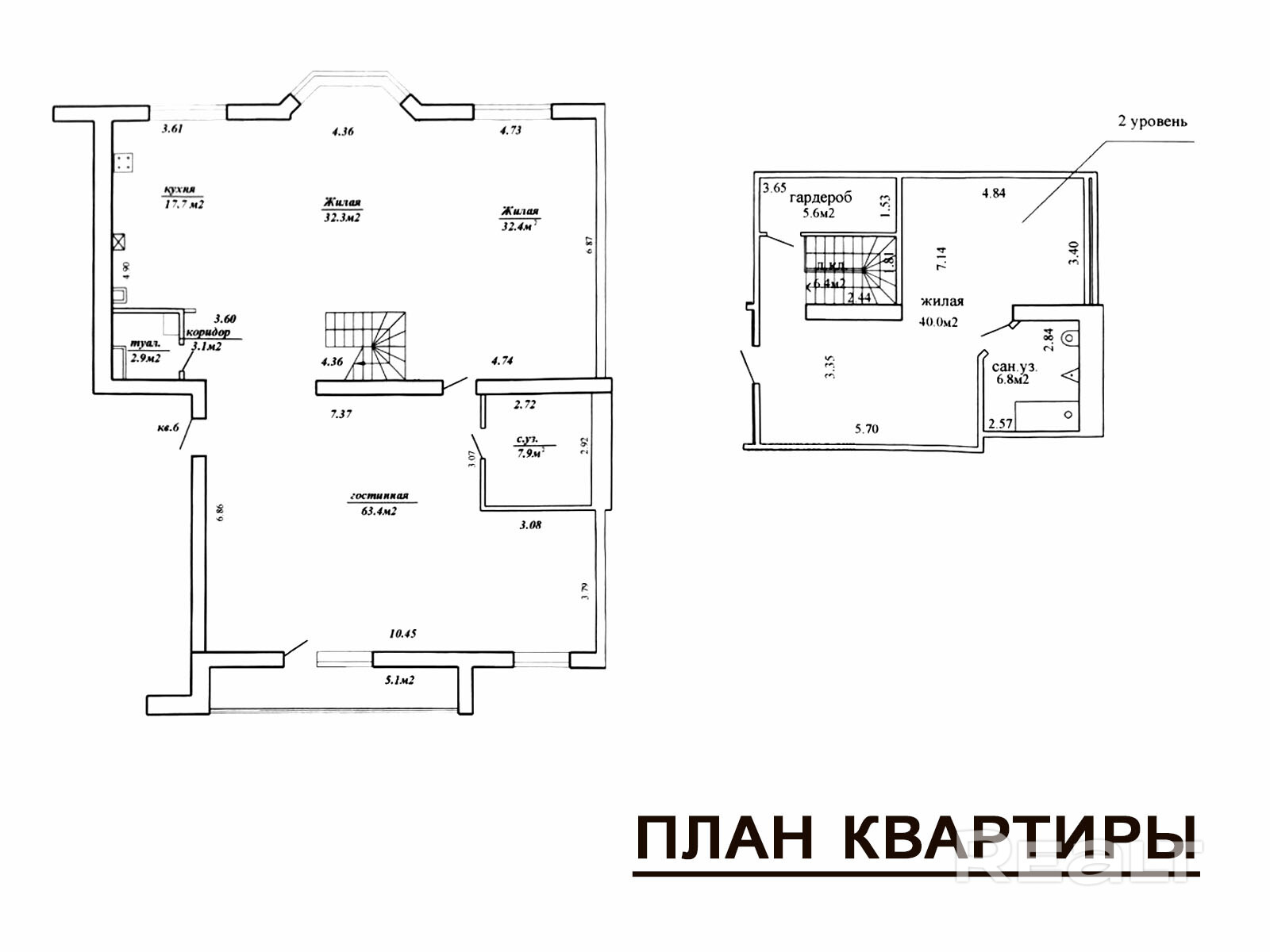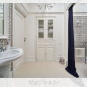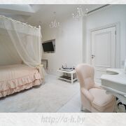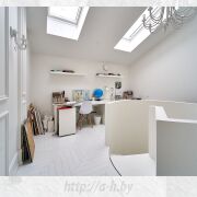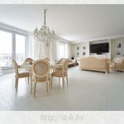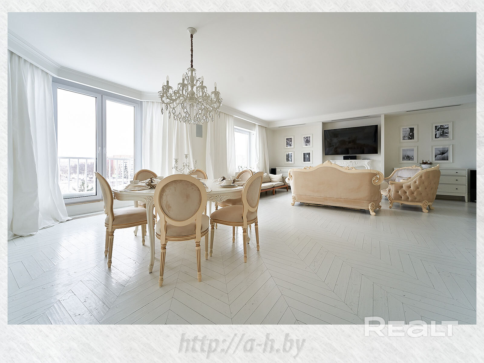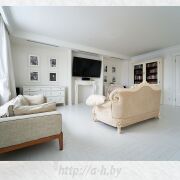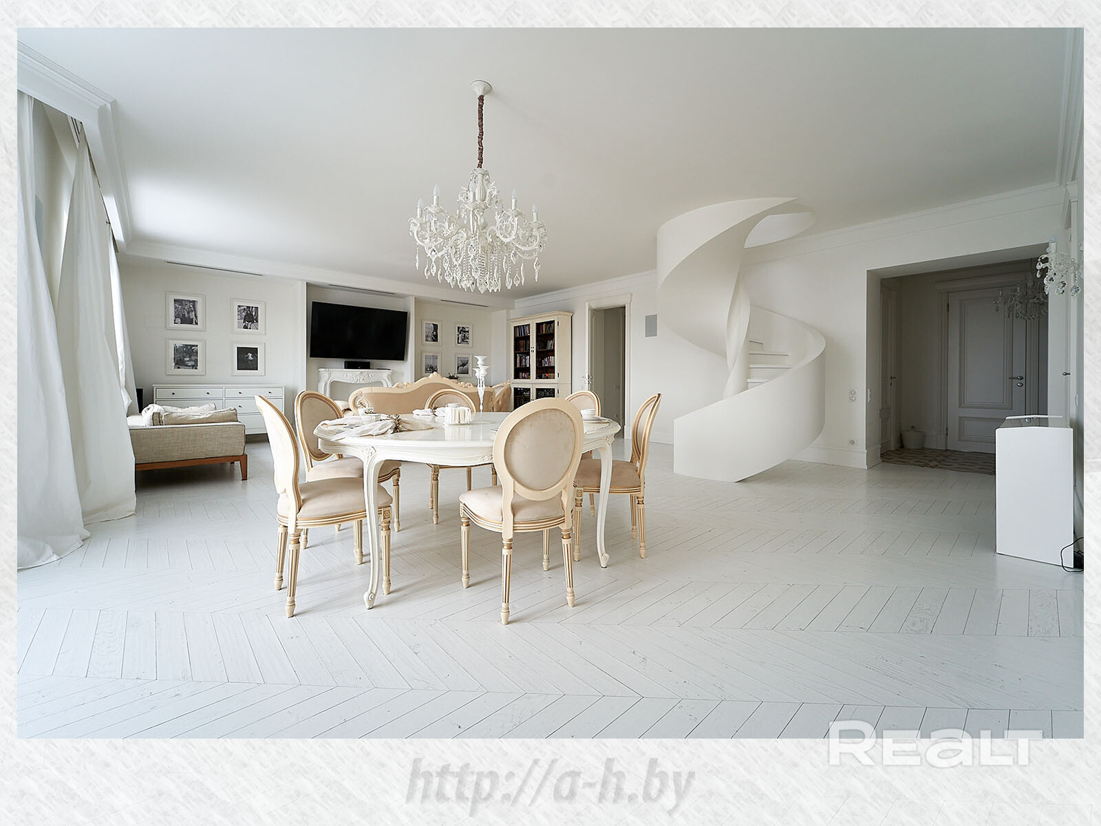 Квартира с отличной планировкой, находится на четвертом и пятом мансардном этажах. Большая кухня-гостиная, две спальни, два санузла и две гардеробные - на первом этаже. А на втором уровне - также две спальни и один санузел. Есть две постирочные.