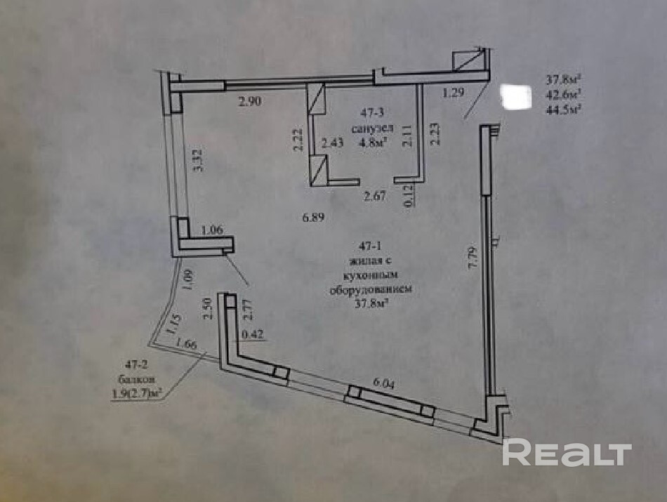 · Площадь квартиры по СНБ 44.5 м2, общая площадь – 37.8м2. Выход на уютную лоджию 2.7 м2. Большие панорамные окна в пол.