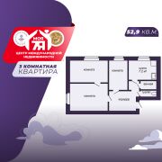-Общая площадь квартиры — 52,9 кв.м, жилая — 34,1 кв.м.