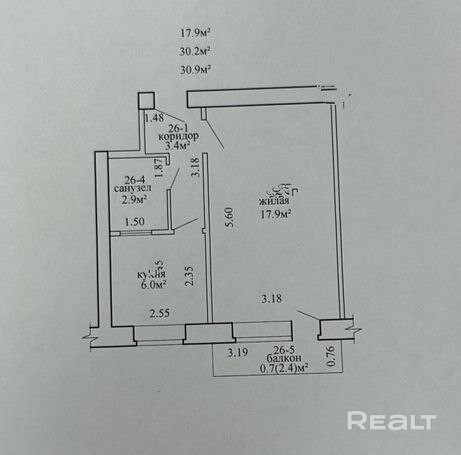 · Площадь: 30,9 м2.