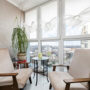 - Лоджия застеклена и утеплена, оборудована зоной отдыха.