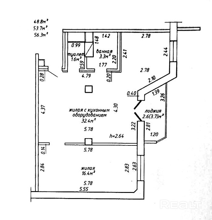 56.3 м²