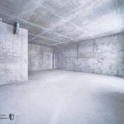 Подземный паркинг в здании + шлагбаум на въезде.