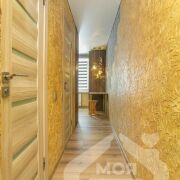 -В коридоре предусмотрена удобная кладовка, межкомнатные двери новые, МДФ, выдержаны в одном стиле с мебелью. В гостиной - дверь по уникальному проекту с оригинальной системой створок, которая становится интерьерным акцентом.