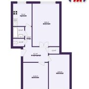-Общая площадь составляет 65 кв.м, жилая - 45,3 кв.м. Планировка продуманная и комфортная: все комнаты изолированные, окна выходят на две стороны дома, поэтому в квартире много естественного света и стабильный микроклимат в течение дня.
