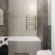 Имеются две отдельные ванные комнаты, с санузлами. Отделаны широкоформатным керамогранитом. Ванны чешского производства.