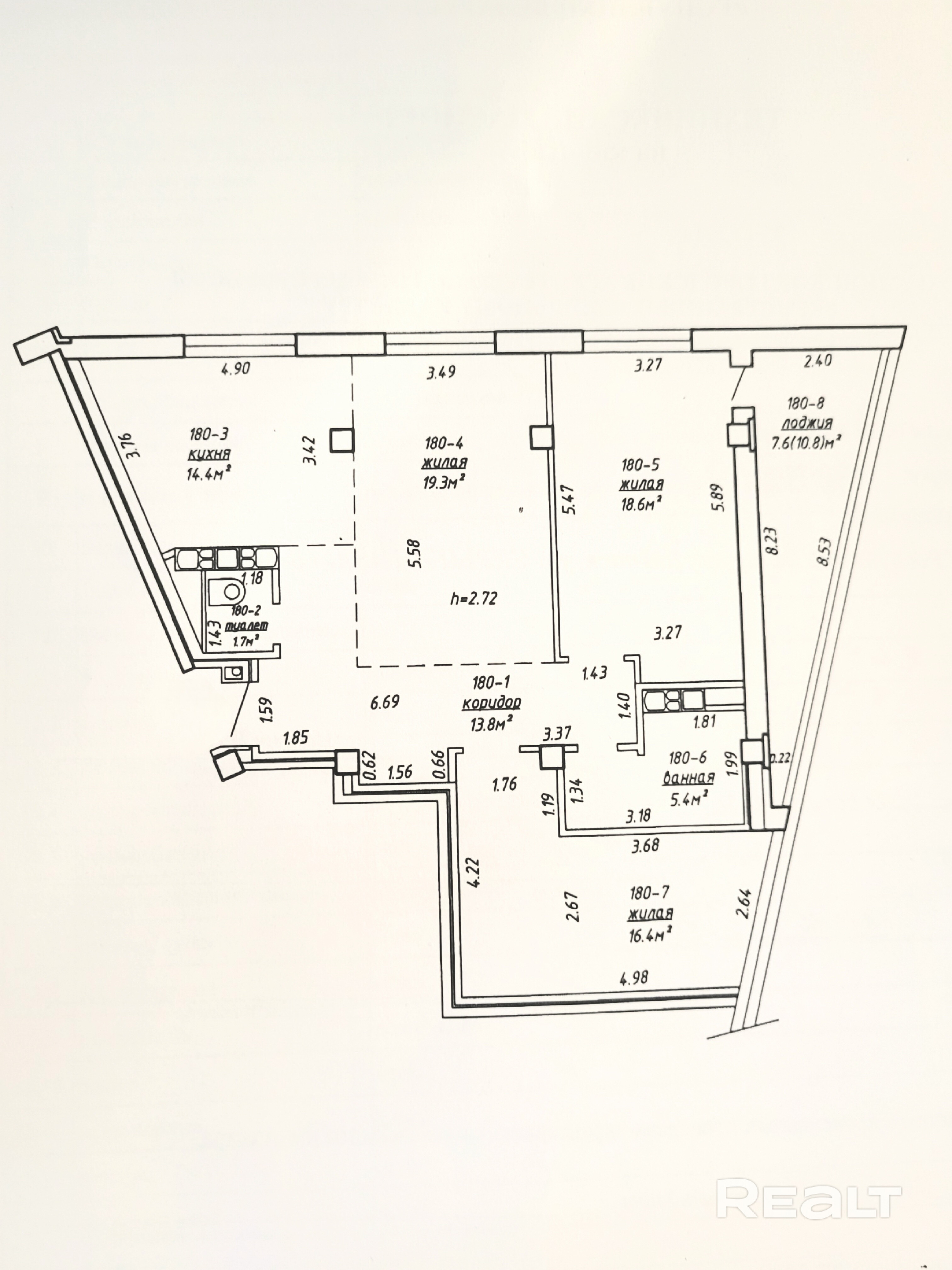 Площадь квартиры по СНБ 97.2 кв.м.
