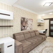 Квартира содержит все для приятного проживания людей, которые ищут современный, продуманный до мелочей дизайн без лишних перегружающих деталей.