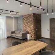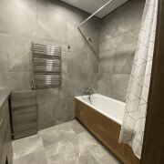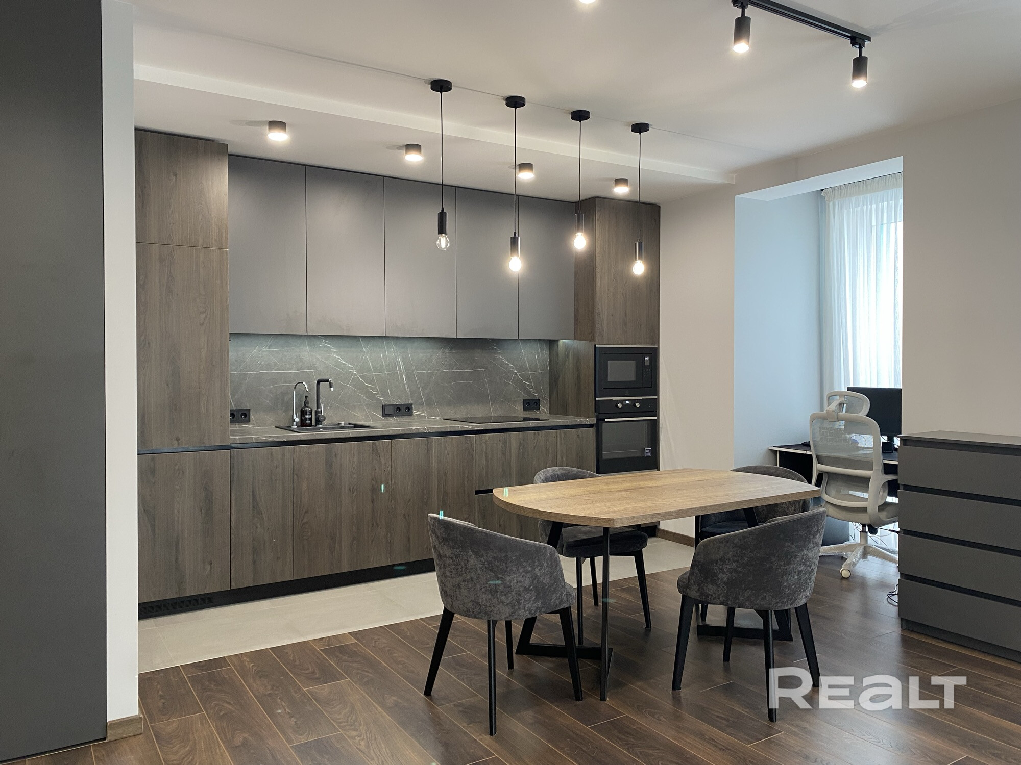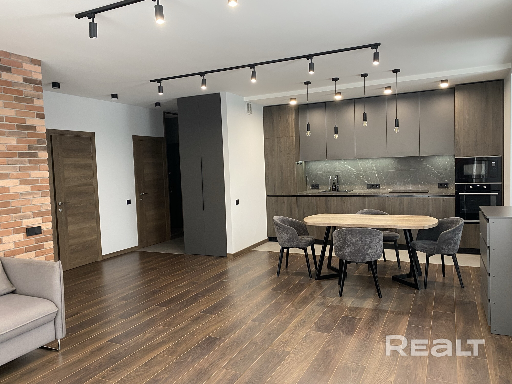Дизайнерский ремонт из качественных материалов. Пространство позволяет внести коррективы на свой вкус при необходимости. Стены идеально выровнены,покрашены. На стенах вставки из декоративного камня и штукатурки. Гипсокартоновые потолки. На полу ламинат(33 класс) и керамогранит. На кухне вся техника Electrolux. В спальне вместительный шкаф со стеклянной дверью. В доме есть спортзал для жильцов, игровая для детей. Парковка под шлагбаумом. Видеонаблюдение по периметру дома и в подъездах.