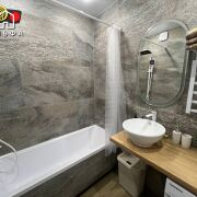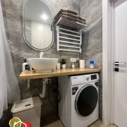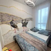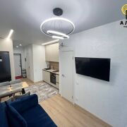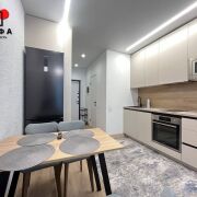 Квартира выполнена с использованием только качественных и современных материалов. Она продается с полной меблировкой и техникой, что позволяет новому владельцу сразу же комфортно обустроиться. Пространство грамотно зонировано, создавая ощущение свободы и уюта. Большие окна в пол с усиленным остеклением не только наполняют квартиру естественным светом, но и обеспечивают великолепные виды на окружающий пейзаж. Кухня, как сердце квартиры, оснащена встроенной качественной техникой: холодильником, индукционной варочной панелью, духовым шкафом, микроволновой печью и вытяжкой. Шкафчики с доводчиками обеспечивают максимальное удобство и функциональность. Отдельно выделенная спальня с двуспальной кроватью станет идеальным местом для уединения и отдыха. Санузел оформлен с использованием качественной плитки и современной сантехники, что добавляет комфорта в повседневную жизнь. Система освещения в квартире позволяет создавать различные сценарии, идеально подходящие для любого случая, будь то романтический вечер или вечер с друзьями.