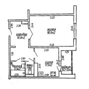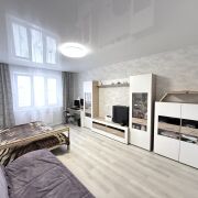Большая жилая комната 18м2. На полу такой же линолеум "под ламинат ", как и на кухне. Потолки во всей квартире натяжные.