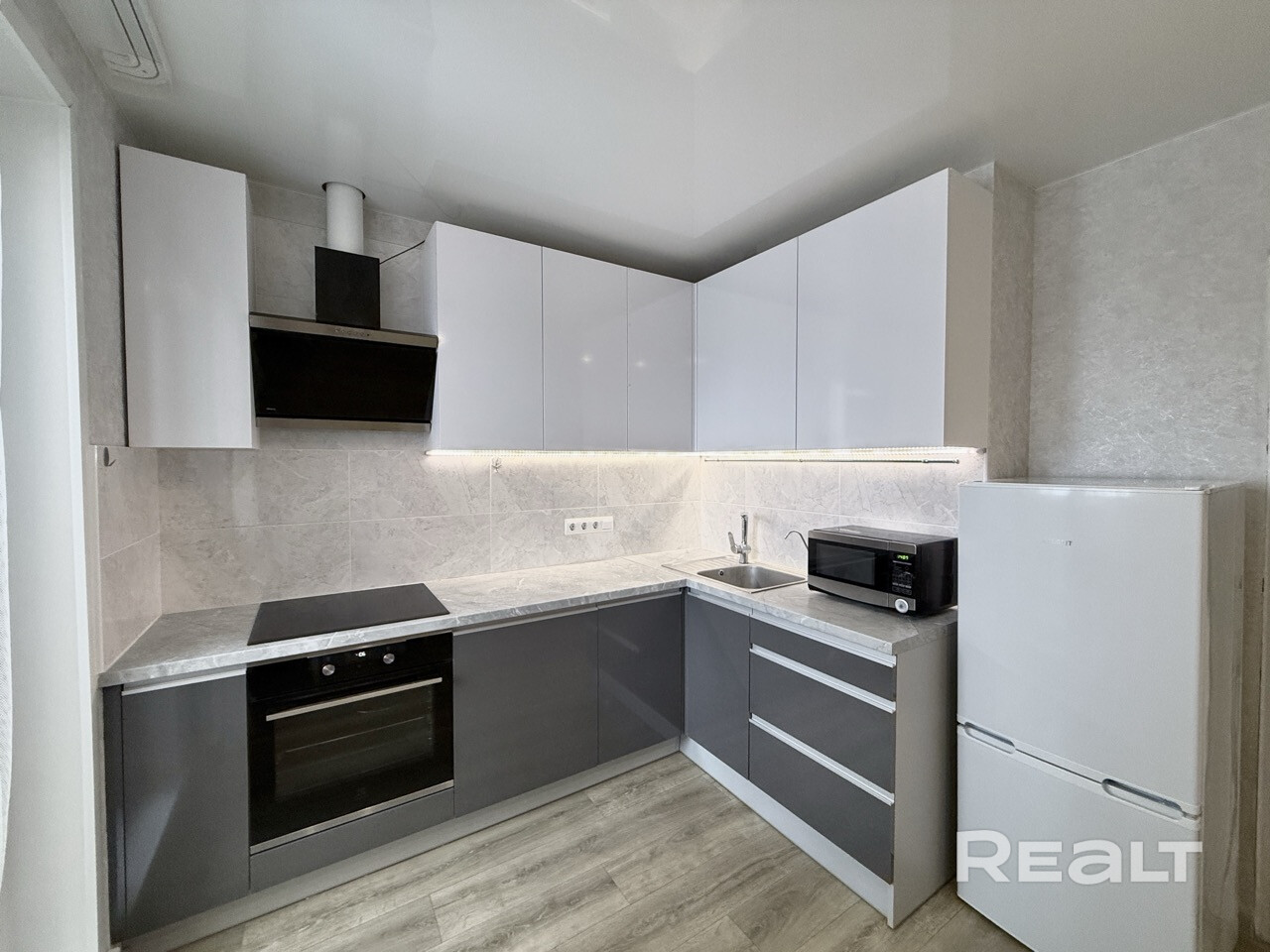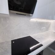 Шкафчики все на доводчиках. Есть дополнительная подсветка под шкафчиками.