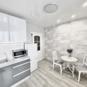 Все стены в квартире были выровнены и оклеены импортными моющими обоями.