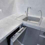 Установлен фильтр для питьевой воды. На полу кухни хороший линолеум с рисунком "ламината".