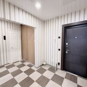 В прихожей установлены два вместительных шкафа купе. Входная дверь металлическая. На полу прихожей лежит хорошая плитка.