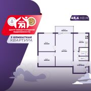 -Квартира расположена на комфортном 3 этаже 5-этажного дома, общей площадью 49,4 кв.м., из которых 34 кв.м. занимают жилые помещения.