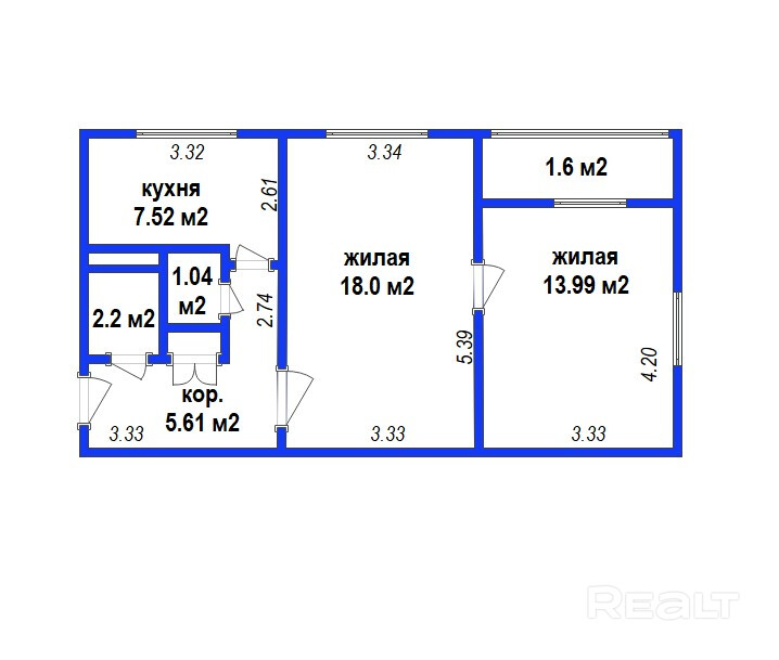 - большие две светлые комнаты:18,0 кв. м и 13,99 кв. м;