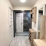 -В интерьере использованы стильные обои в коридоре и нейтральные обои в спальне, создающие атмосферу спокойствия. Квартира оснащена современными межкомнатными дверями и продуманным освещением, что делает её ещё более светлой и уютной, потолки натяжные. Все материалы, использованные в ремонте, гарантируют долговечность и высокую эстетическую привлекательность на долгое время.