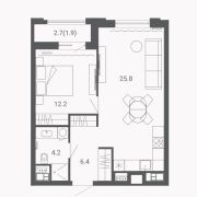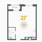 Однокомнатная квартира 52 м2 в черновой отделке от застройщика