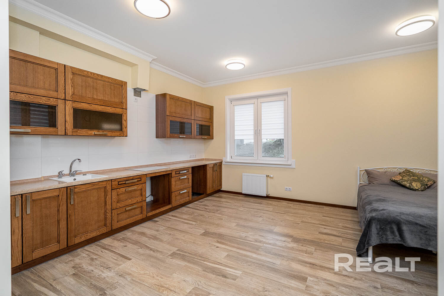 Главное впечатление производит пространство - за счет высоты потолков 3 метра и окон, выходящих на южную и восточную стороны.