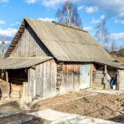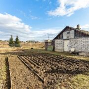 - Участок площадью 11,8 соток – ровный, зонированный, оснащённый всеми центральными коммуникациями, подведёнными к нескольким объектам. На территории расположены: часть блокированного жилого дома с одной жилой комнатой (13,1 кв.м.) и веранда-кухня (13,4 кв.м.) с оборудованным погребом (4 кв.м.) и тамбуром (4,3 кв.м.); хозяйственно-бытовое помещение общей площадью 92,31 кв.м. с мощным фундаментом и блочно-кирпичными стенами, разделённое на три части – большой гараж, банный комплекс и хозяйственный склад. Первоначально фундамент закладывался под строительство жилого дома, но впоследствии помещение было переоборудовано под хозяйственный блок. Всё здание электрифицировано (ввод – три фазы, 380 В) и подключено к центральному водоснабжению и канализации. Кроме того, на участке находятся большой сарай, несколько пристроек и навесов, два больших парника, оборудованные грядки и высаженные плодовые деревья.