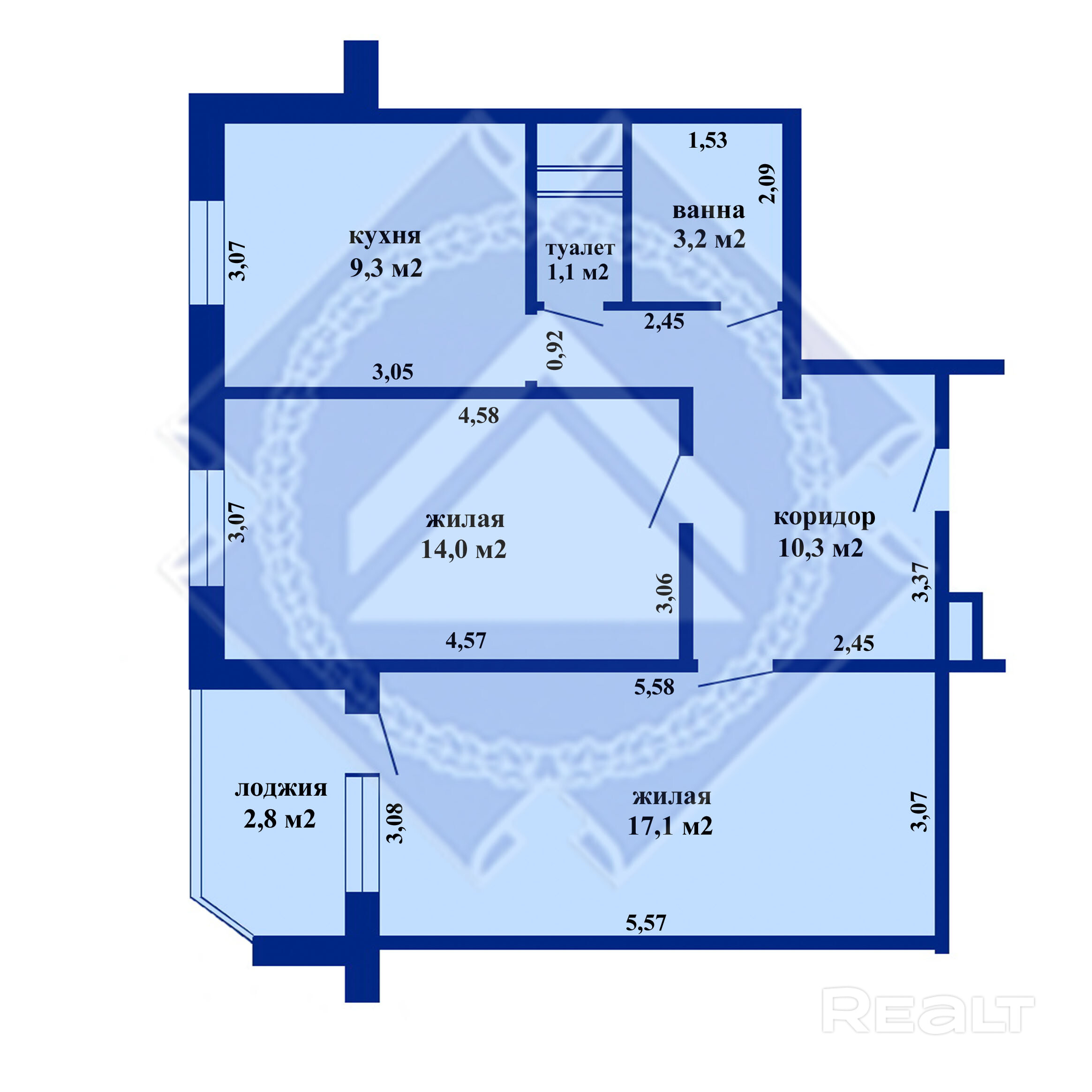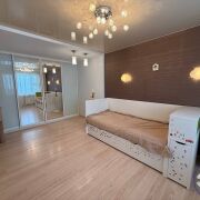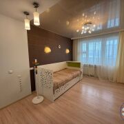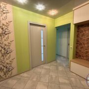 - Потолок: коридор и жилые комнаты - натяжной (в одной из жилых + гипсокартон), кухня - гипсокартон, имеется точечное освещение;