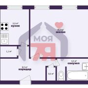 - Второй этаж — удобный и востребованный вариант: без лифта и без шума первого этажа. Квартира светлая. Планировка понятная: просторная комната и квадратный коридор без потери полезной площади.