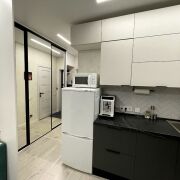 Квартира-студия на 12 этаже в доме "Калининград", в 5 минутах от метро и ТРЦ. В 3-х минутах остановка общественного транспорта. Дом 2021 года постройки. Имеется 2 лифта. На первом этаже просторная колясочная, санузел, камеры хранения, лапомойка для собак. На этаже имеется кладовая. Квартира светлая и уютная, современный ремонт. Натяжные потолки с парящими линиями, свет управляется системой "Умный дом с Алисой". Установлены тёплые полы, линия кондиционера. Есть мебель и техника.