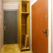 Входные двери в квартиру металлические, на полу линолеум. Окна квартиры выходят на две стороны дома: кухня, две комнаты- на западную сторону, гостиная – на восточную сторону.