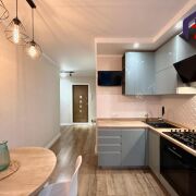 -Просторная кухня, площадью 8,4 кв.м.Установлен современный кухонный гарнитур «ЗОВ», встроенная техника остаётся, всё выглядит цельно и продуманно. Есть удобная обеденная зона.