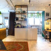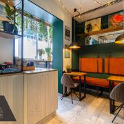 Ближайший магазин — в 5 минутах ходьбы, в самом здании работает кафе.