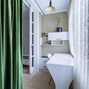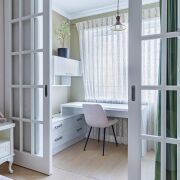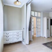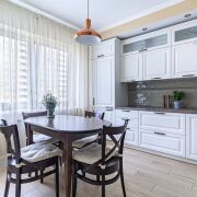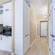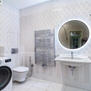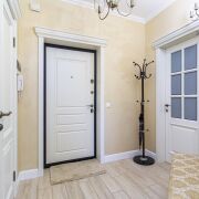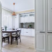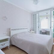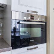В квартире сделана современная качественная отделка: в комнатах уложена натуральная паркетная доска, в кухне, прихожей и санузле - итальянская плитка с подогревом, на стенах - венецианская штукатурка. Вся мебель в квартире изготовлена под заказ из крашеного МДФ, двери из массива, установлена кухня премиум класса с фурнитурой (+доводчики) Blum, укомплектована всей необходимой техникой Bosch (варочная поверхность, духовой шкаф, посудомоечная машина, встроенный холодильник). В квартире установлен кондиционер и бойлер.