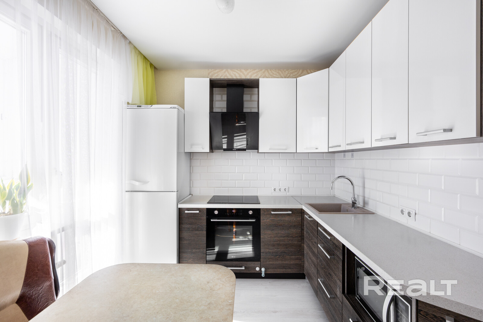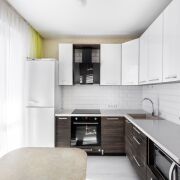 Кухня – встроенная, с доводчиками и продуманными системами хранения.