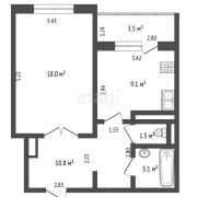 • Жилая комната: 18 м2 (грамотно зонирована на спальню с рабочим местом и гостиную)