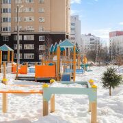 - В подъезде установлено видеонаблюдение, работают три современных лифта. Придомовая территория благоустроена: есть детская площадка, удобная парковка для жильцов, а также зарядки для электромобилей.