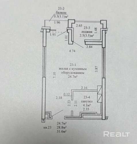 Площадь по СНБ — 31,6 м2. Квартира расположена на 4 этаже 25-этажного дома.