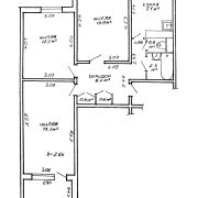 стандартная планировка, 62,9 кв. метров (без учёта площади лоджии). Металлическая дверь, в двух комнатах и кухне установлены пластиковые стеклопакеты, в коридоре и кухне напольное покрытие - плитка, в двух комнатах "родной" линолеум, в третьей комнате ламинат. Произведена замена дверей в жилые комнаты. Остаётся 2 шкафа-купе, мебель на кухне.
