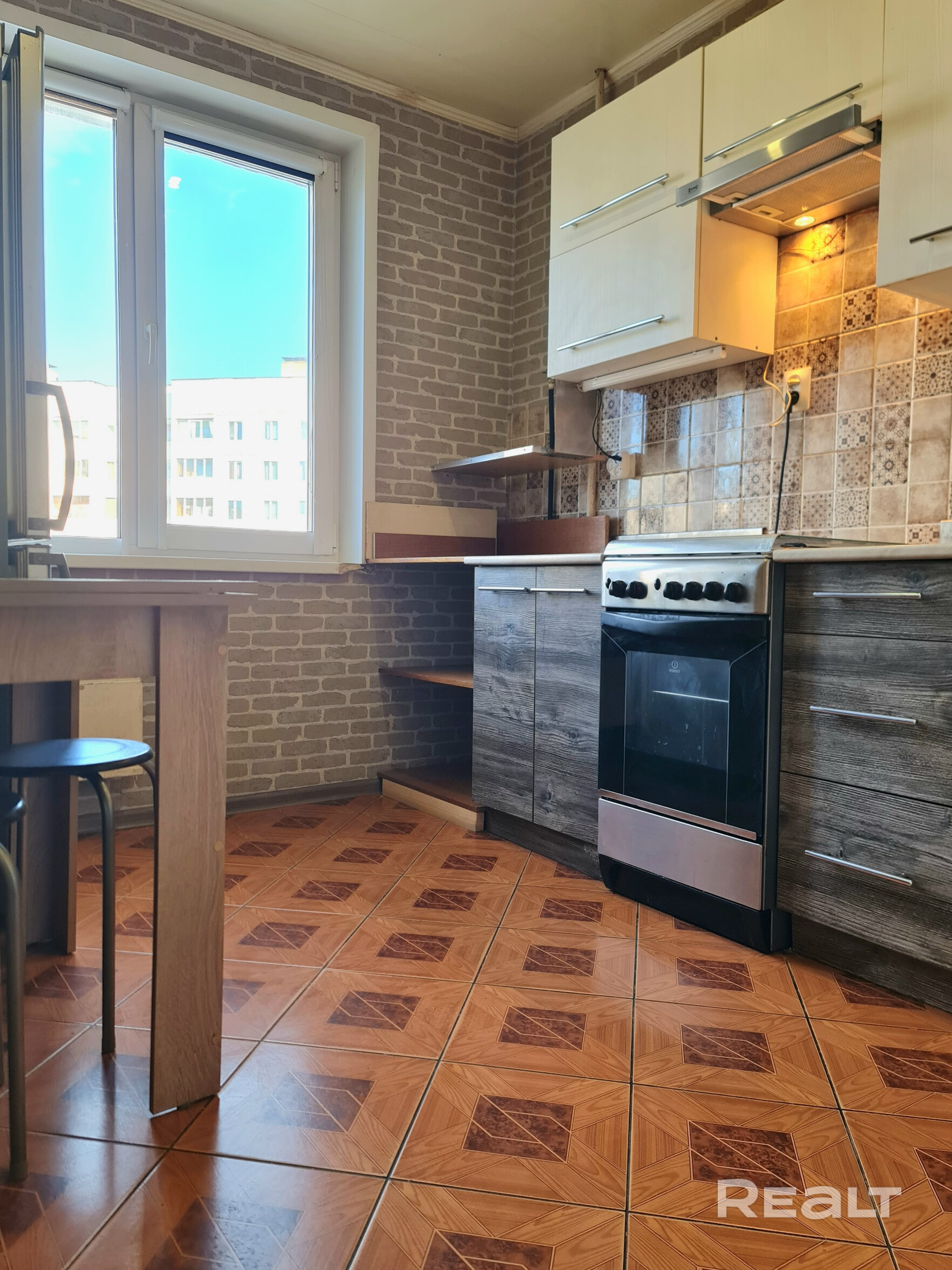 стандартная планировка, 62,9 кв. метров (без учёта площади лоджии). Металлическая дверь, в двух комнатах и кухне установлены пластиковые стеклопакеты, в коридоре и кухне напольное покрытие -  плитка, в двух комнатах "родной" линолеум, в третьей комнате ламинат. Произведена замена дверей в жилые комнаты. Остаётся 2 шкафа-купе, мебель на кухне.