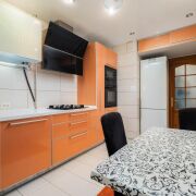 -Просторная кухня почти 10 кв.м. Здесь установлен современный глянцевый гарнитур, встроенная техника, продуманное освещение и акцентная вытяжка - это то место, где хочется встречать утро с кофе или собираться с друзьями по вечерам. Выход на застеклённую лоджию визуально добавляет объёма и расширяет варианты использования - завтраки на «летней» террасе, хранение, мини-кабинет.