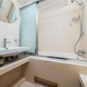 -Раздельный санузел - по-настоящему практично: утром каждый идёт по своему маршруту, без очередей и конфликтов. Он облицован плиткой, установлена качественная сантехника.