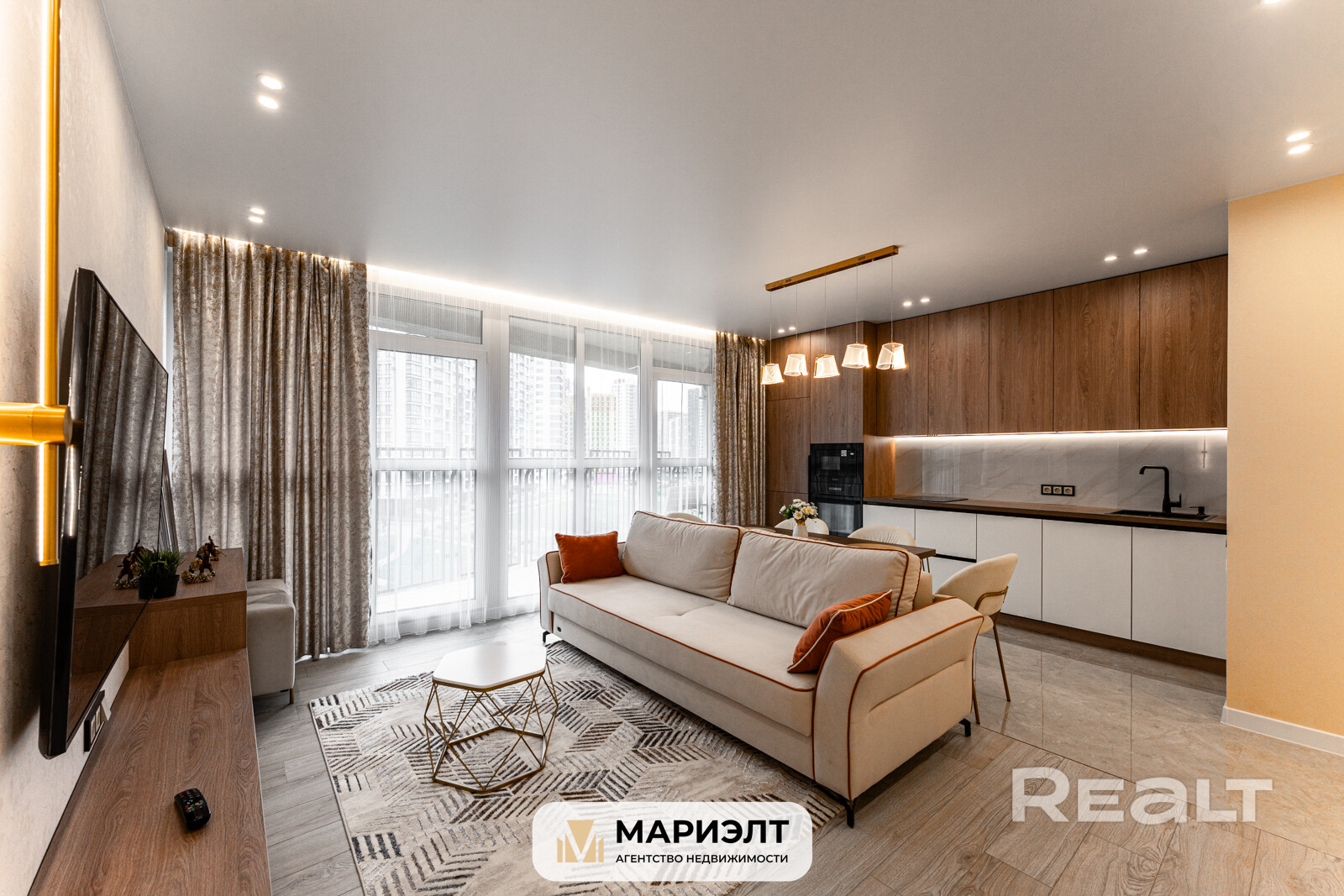 Квартира очень светлая, с панорамным остеклением и хорошим видом из окна. Полностью готова к проживанию, в стоимость включена вся мебель и техника. Продуманная планировка: 2 отдельные спальни, просторная кухня-гостиная, раздельный санузел, есть гардеробная, встроенные шкафы, а также – 2 уютных лоджии.